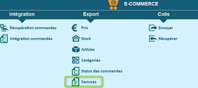 En fin de journée ou à la fréquence souhaitée , accédez à l’interfaçe d’envoi des factures