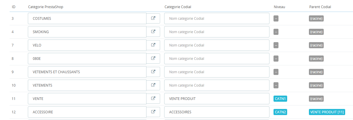 Possibilité de renommer la catégorie dans Prestashop sans perdre la liaison (mapping)