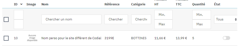 Lors de l’activation de la coche « Supprimer » dans Codial, désativation automatique du produit sur Prestashop :